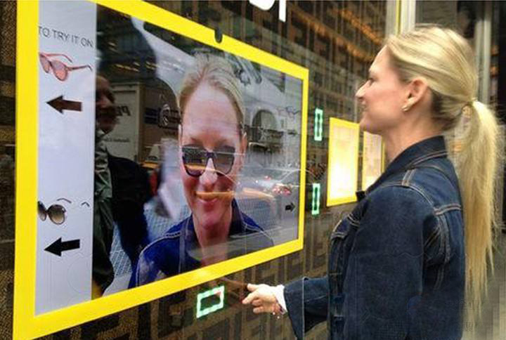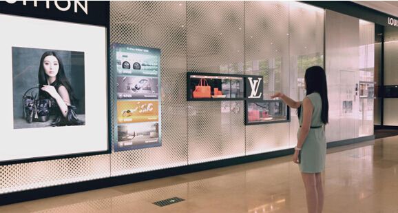 互動櫥窗設(shè)備可將圖像投射到商戶臨街玻璃櫥窗的普通玻璃上(所有互動櫥窗設(shè)備都放置在店內(nèi),畫面尺寸不限),顧客在店外隔著玻璃點擊圖像畫面,在店內(nèi)的互動櫥窗設(shè)備可感應(yīng)到 ……
